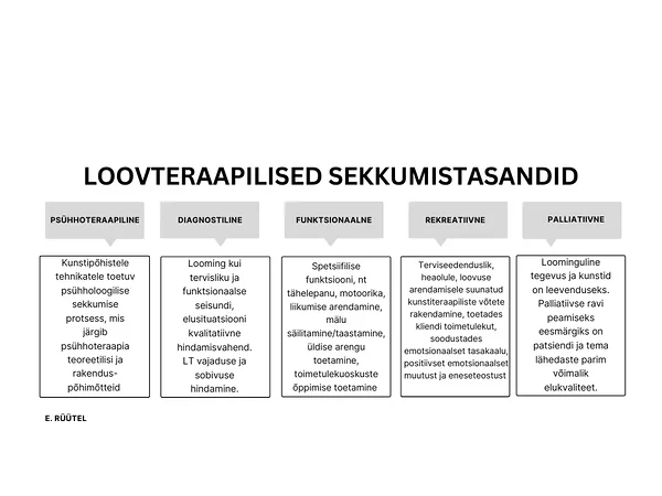 Loovteraapiate puhul on ära sõnastatud viis sekkumistasandit, mis näitab kenasti loovteraapia erinevaid